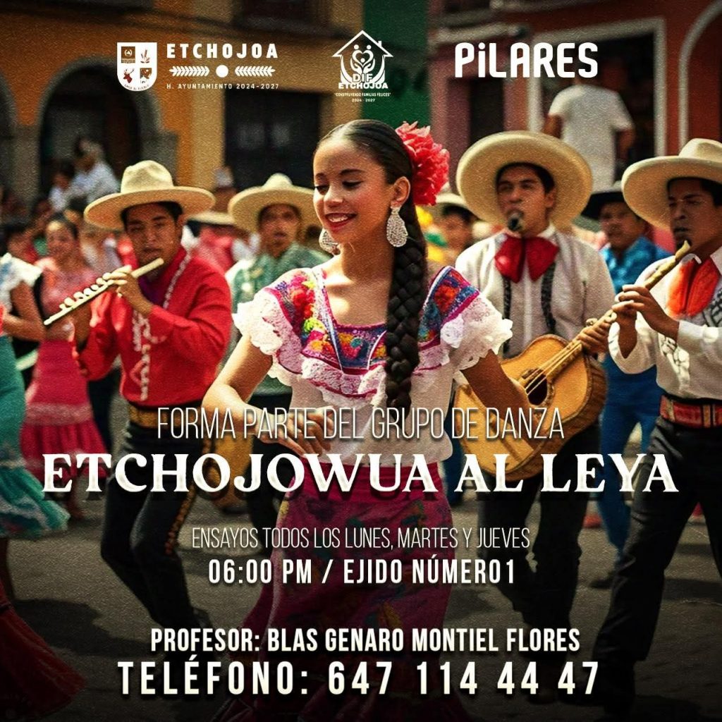 En DIF Pilares Etchojoa, en equipo con el Gobierno Municipal, te invitamos a formar parte del grupo de danza Etchojowua AL LEYA, donde podrás expresar el orgullo y la alegría de nuestras raíces a través del baile folclórico. 💃🕺