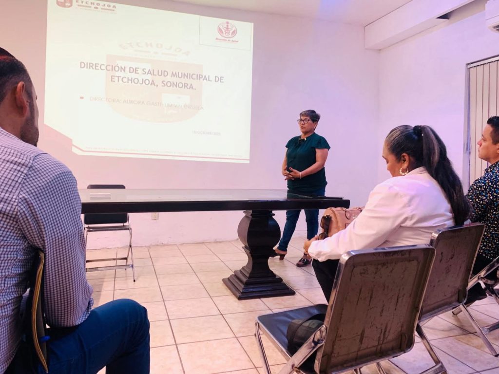Etchojoa, Son.- Personal de la Dirección de Salud Municipal, encabezada por Aurora Gastélum, acudió a las instalaciones del Distrito de Salud No. 5, donde participaron en reuniones de planeación y coordinación de estrategias para combatir el dengue en la región.