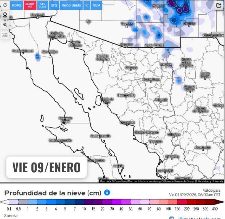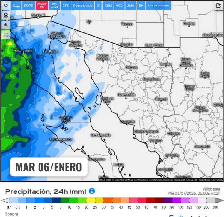 Hermosillo, Sonora a 06 de enero de 2026.- Martes, basándose en la valoración y análisis de la información meteorológica en general y con base en información del Servicio Meteorológico Nacional y diferentes fuentes oficiales de los Estados Unidos, la Coordinación Estatal de Protección Civil emite el siguiente pronóstico: