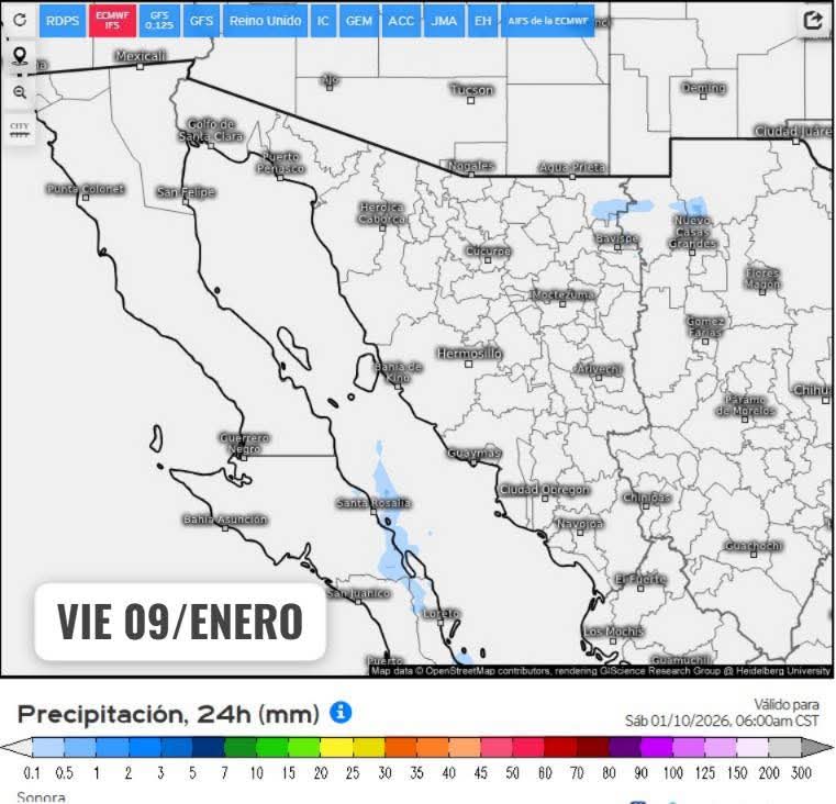 Hermosillo, Sonora a 07 de enero de 2026.- miércoles basándose en la valoración y análisis de la información meteorológica en general y con base en información del Servicio Meteorológico Nacional y diferentes fuentes oficiales de los Estados Unidos, la Coordinación Estatal de Protección Civil emite el siguiente pronóstico: