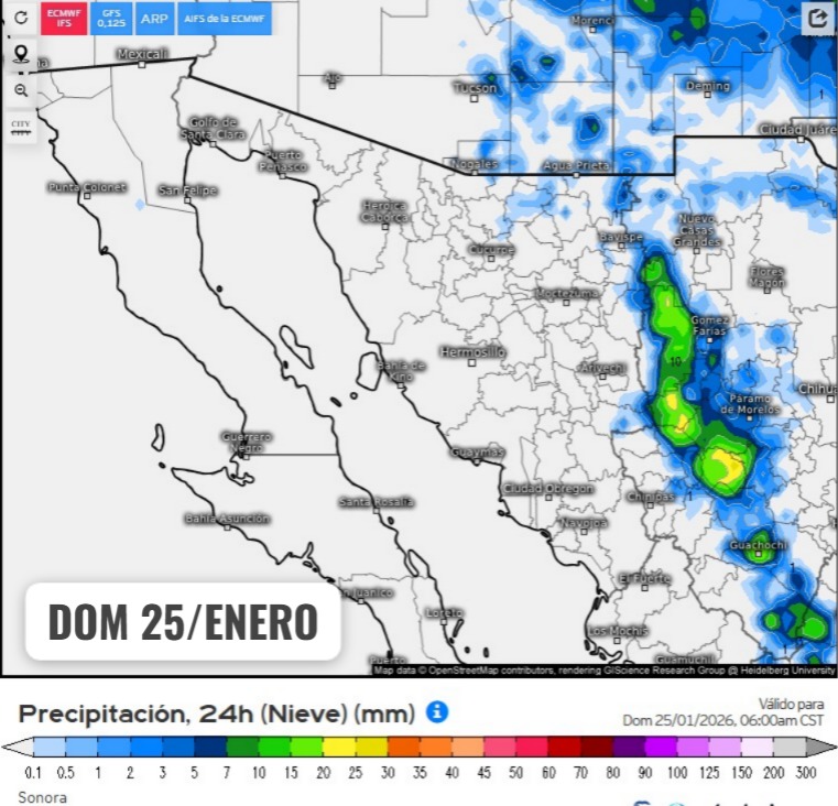 Dichas condiciones climáticas gélidas, que han empezado a sentirse en Sonora, son producto de la tercera tormenta invernal, en combinación con el Frente Frío número 31, su masa de aire ártico y un río atmosférico, explicó.