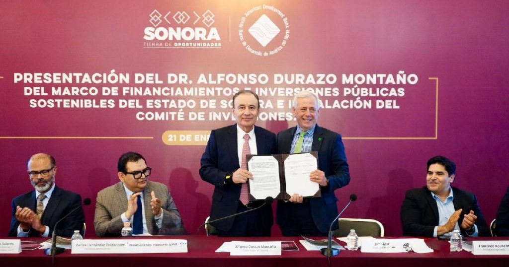 Hermosillo, Sonora; 24 de enero de 2026.- Con una visión de largo plazo y alineada al uso de los recursos públicos con estándares internacionales de sostenibilidad, el Gobernador Alfonso Durazo Montaño encabezó la presentación del Marco de Financiamientos e Inversiones Públicas Sostenibles del Estado de Sonora, una estrategia que coloca a la entidad como referente nacional en el acceso a financiamiento verde, social y ambiental bajo estándares internacionales.