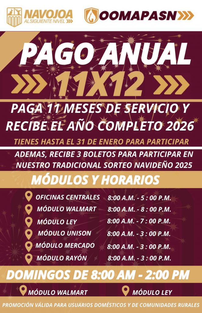 🎊 ¡Aprovecha el programa 11×12 de Oomapas Navojoa! 🎊
