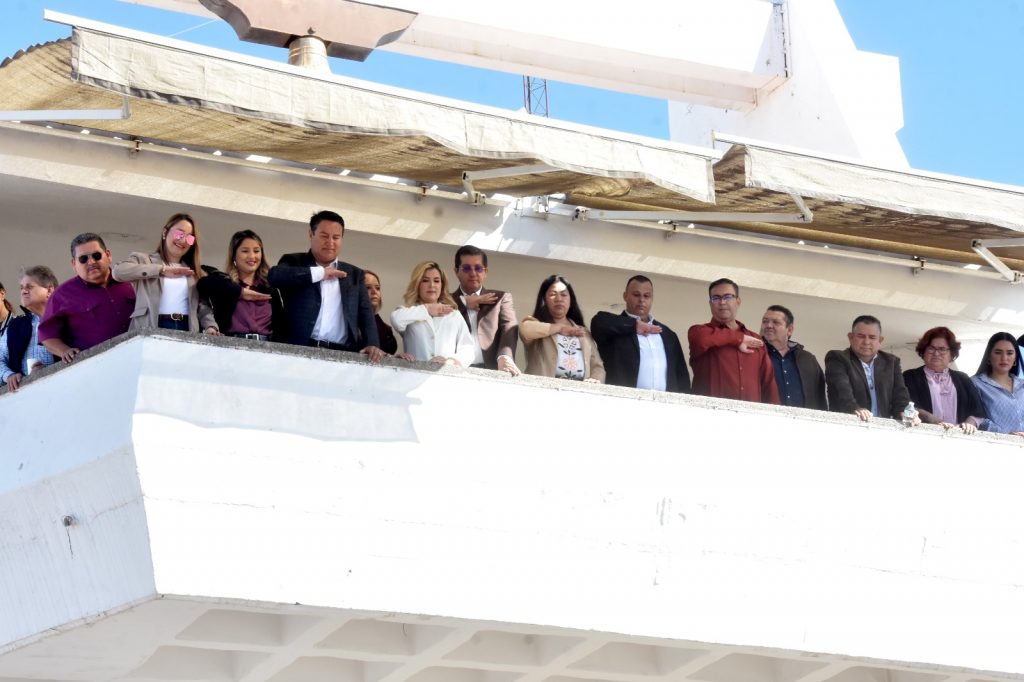 Previamente, a las 8:00 horas, en la Plaza 5 de Mayo, en la ceremonia oficial por el Día de la Bandera, el presidente Elías Retes resaltó el orgullo histórico que el pueblo mexicano siente por el lábaro patrio, al cual se honra con cada acto de valor, de honestidad y transparencia, tal como lo aplica la administración que encabeza llevando a Navojoa a un alto nivel de calidad de vida y prosperidad.