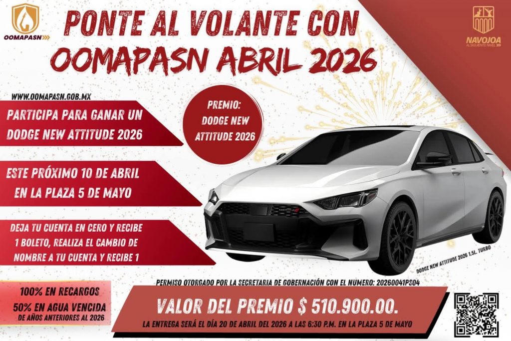 Navojoa, Son.- En Rueda de Prensa celebrada ayer por la tarde noche, el Presidente municipal, Jorge Alberto Elías Retes, dio el banderazo inicial de la campaña PONTE AL VOLANTE CON OOMAPASN 2026, una gran oportunidad para ser el afortunado ganador de un vehículo totalmente nuevo para reconocer a los usuarios cumplidos.