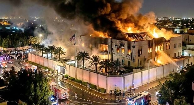 - El ataque de drones dejó en llamas las oficinas de la embajada; Donald Trump prometió tomar represalias ante incendio a las instalaciones