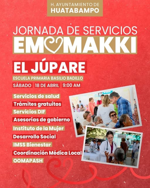 El próximo sábado 18 de abril se llevará a cabo la Jornada Emomakki en la Escuela Primaria Basilio Badillo de la comunidad de El Júpare, en un horario de 9:00 de la mañana.