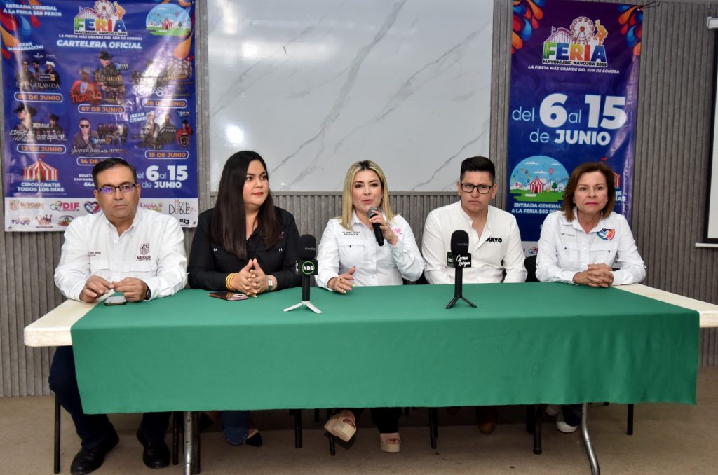 Navojoa, Sonora, 14 de mayo 2025.- Por tercer año consecutivo, Navojoa ofrecerá para disfrute de los sonorenses y turistas la Feria Mayo Music 2025, gran fiesta popular de causa social hacia el DIF Municipal, del 6 al 15 de junio próximo contando con atractivos juegos mecánicos, vendimias, stands comerciales y una cartelera musical de calidad y altura.