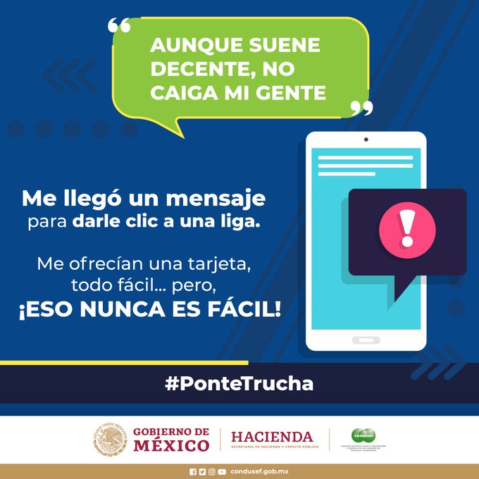 El organismo descentralizado del Gobierno de México llamó a pensarlo dos veces si te piden muy pocos requisitos para ofrecerte una tarjeta de crédito o un préstamo: “Que no te engañen fácil”.