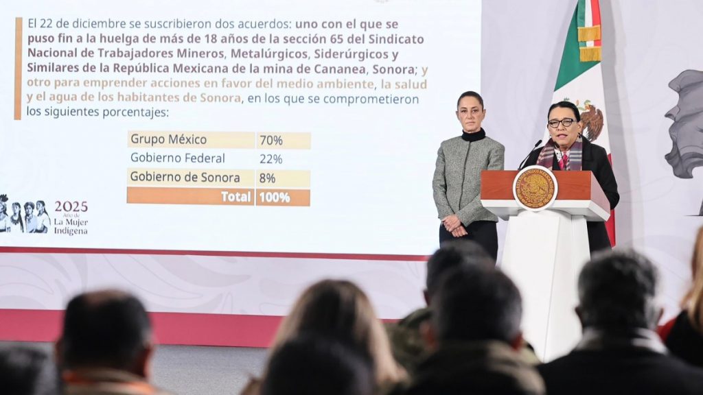 Cd. de México (agencias).- La huelga de Cananea, iniciada en 2007, llegó a su fin tras 18 años. De acuerdo con la secretaria de Gobernación, Rosa Icela Rodríguez, el cierre del conflicto avanza junto con un plan integral que mezcla justicia social y acciones ambientales, además del inicio de pagos de indemnizaciones a mineros, viudas y familias.
