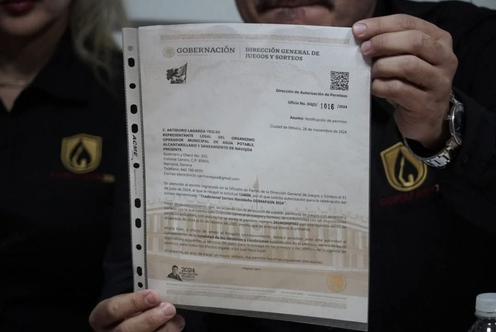 Navojoa, Sonora, a 05 de diciembre del 2024.- Oomapas Navojoa anunció el Tradicional Sorteo Navideño Oomapasn 2024, que consiste en sortear un automóvil FIAT Pulse 2025, con un valor de 363,500 pesos, el próximo 5 de FEBRERO, a las 11:00 am (en la plaza “5 de Mayo”) entre los usuarios cumplidos que pongan su cuenta en ceros bajo las siguientes bases: desde esta misma semana, al pagar normalmente el mes de Noviembre (con su ticket) tiene derecho a un boleto, y si paga por adelantado Diciembre recibirá dos boletos, además si aprovecha en Enero la promoción 11x 12 y paga el año por adelantado recibirá 3 boletos, pudiendo el usuario tener hasta 6 oportunidades para poderse ganar el automóvil.