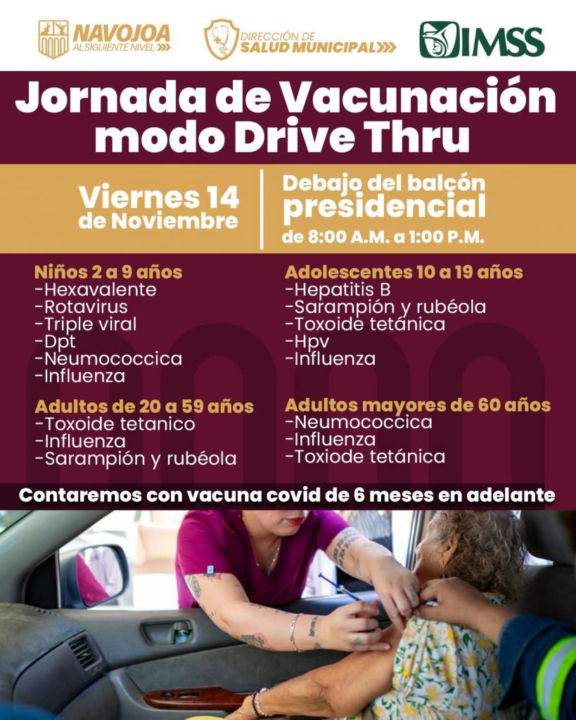 Este viernes 14 de noviembre, acude debajo del balcón presidencial de 8:00 A.M. a 1:00 P.M. y aprovecha esta jornada de vacunación sin bajarte del vehículo. 🏛️✨