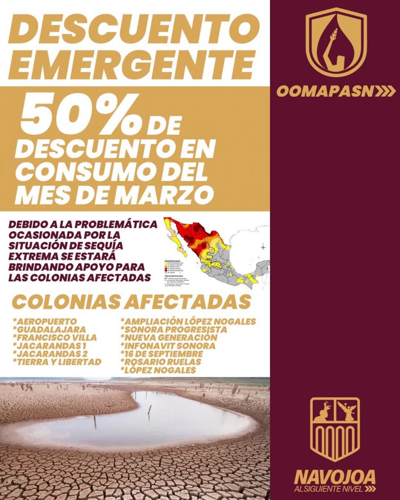 Debido a la problemática ocasionada por la situación de sequía extrema, OOMAPAS Navojoa informa que: