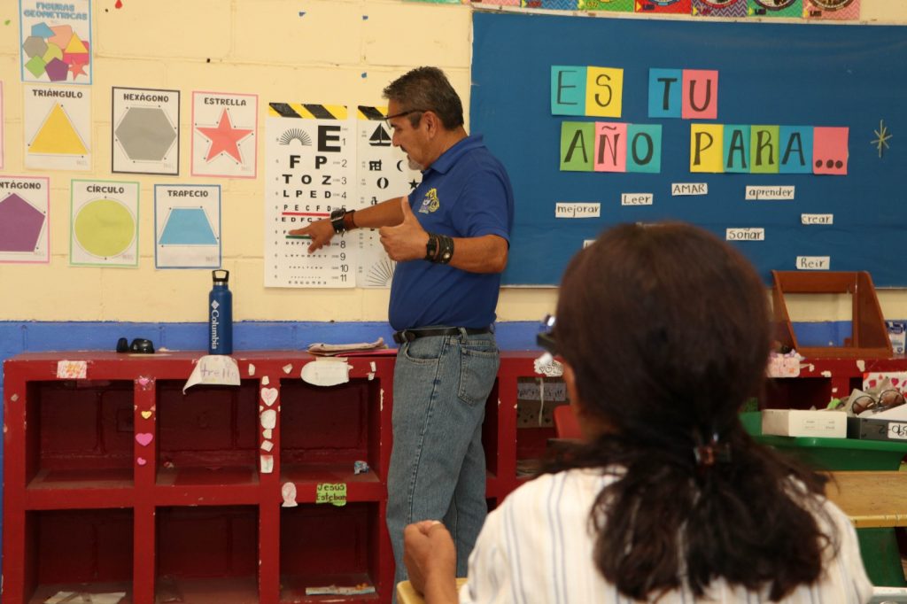 Por la comunidad la comisaria de Tesia, Emiliana Pacheco Poqui, y el director del plantel escolar, Manuel de Jesús Flores Leyva, como facilitador de las instalaciones educativas.