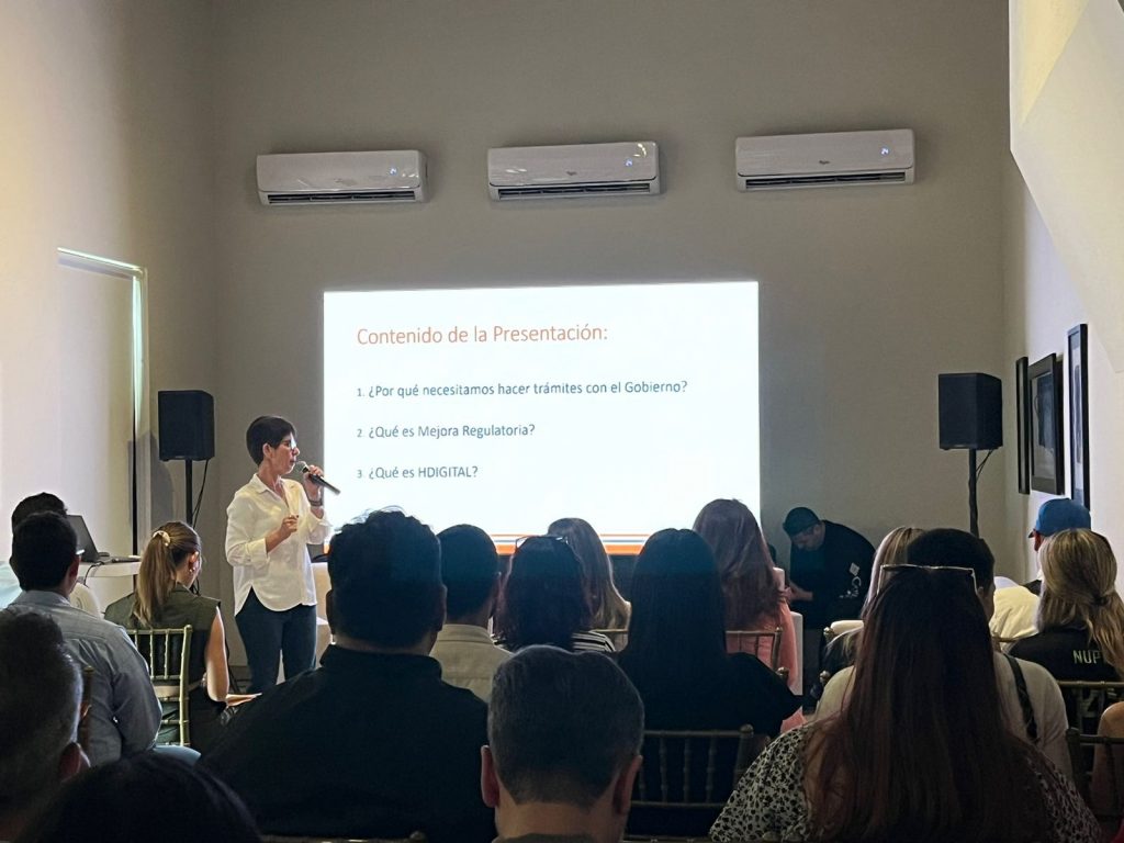 Gertie Agraz Boeneker, directora de la Agencia Municipal de Desarrollo Económico, AMDE, expuso a los asistentes sobre la plataforma “HDigital” en la cual pueden hacer más de 75 trámites municipales en línea.