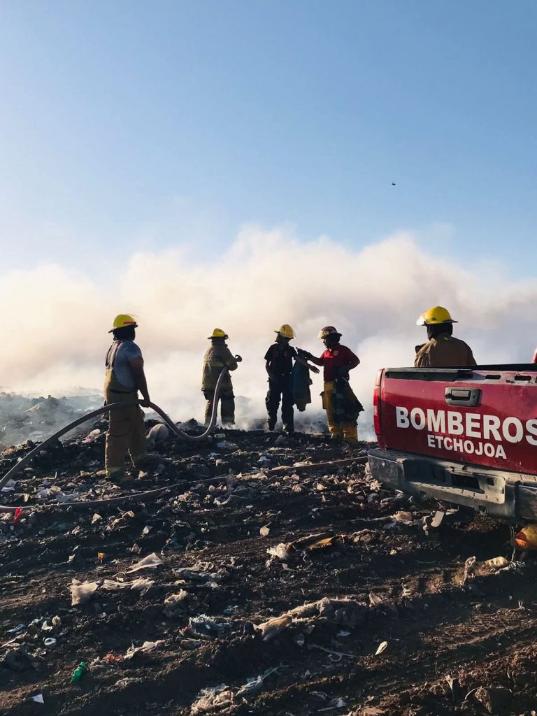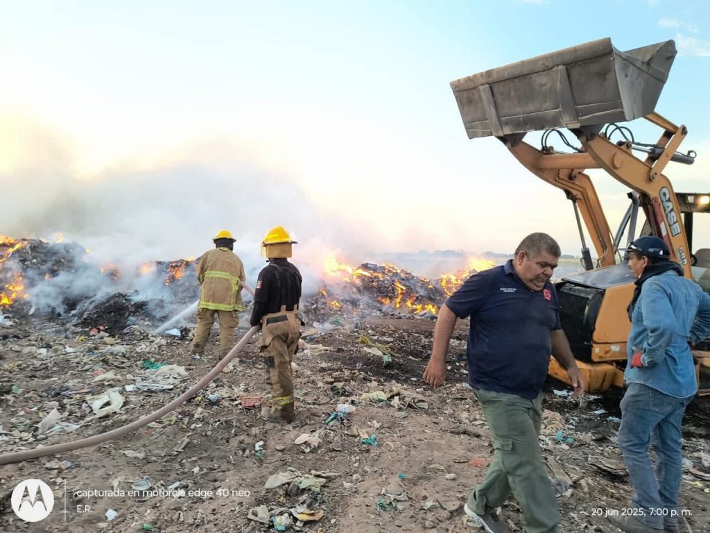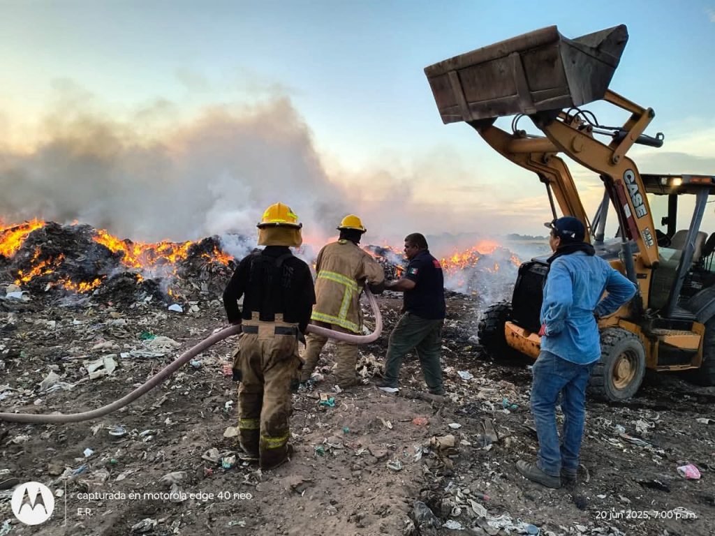 Etchojoa, Son.- Gracias a la solidaridad y coordinación entre Cuerpos de Bomberos y Protección Civil de municipios vecinos del Sur de Sonora, fue posible controlar el incendio registrado en el basurón de Huatabampo, el cual representaba un riesgo para las comunidades.