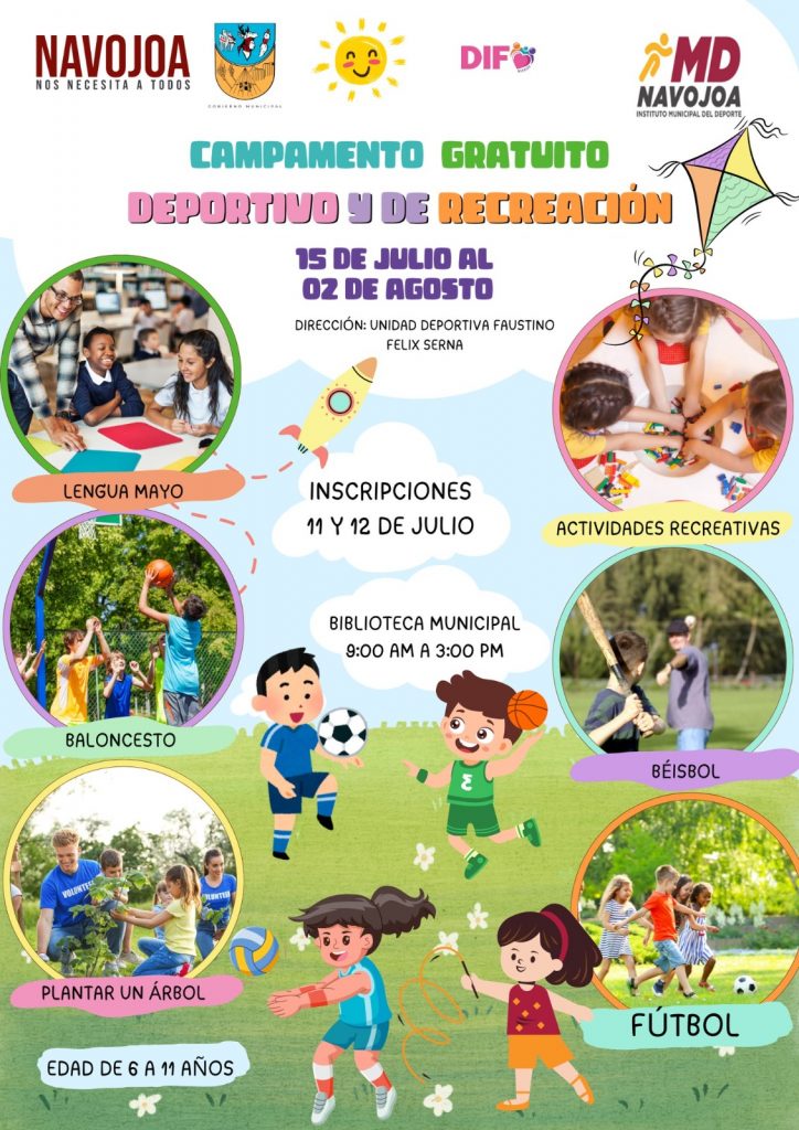 El Instituto Municipal del Deporte te invita a inscribir a tus hijos al Campamento de Verano, que se llevará a cabo del 15 de julio al 02 de agosto, en la unidad deportiva “Faustino Félix Serna”.