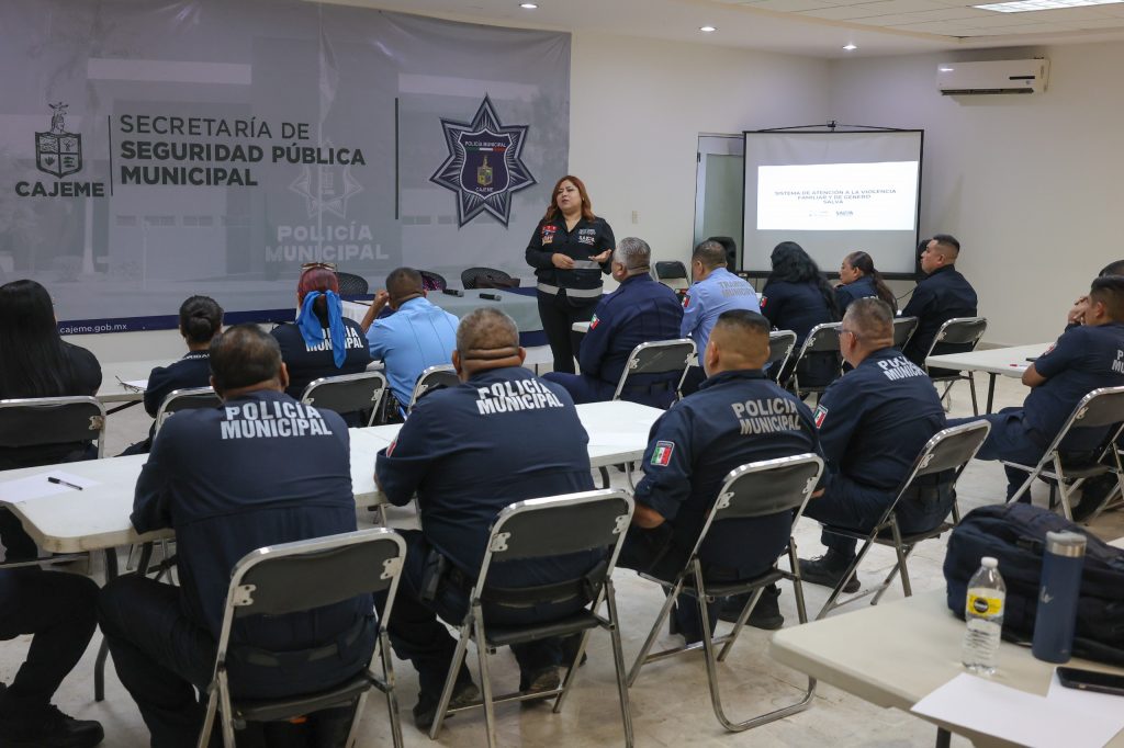 Cd. Obregón, Sonora.- Con el objetivo de fortalecer la atención, protección y apoyo a las víctimas de violencia familiar y de género, elementos activos de la Secretaría de Seguridad Pública Municipal participan en el curso del Sistema de Atención a la Violencia Familiar y de Género del programa SALVA, informó el jefe de la Policía Preventiva y Tránsito de Cajeme, Claudio Cruz Hernández.
