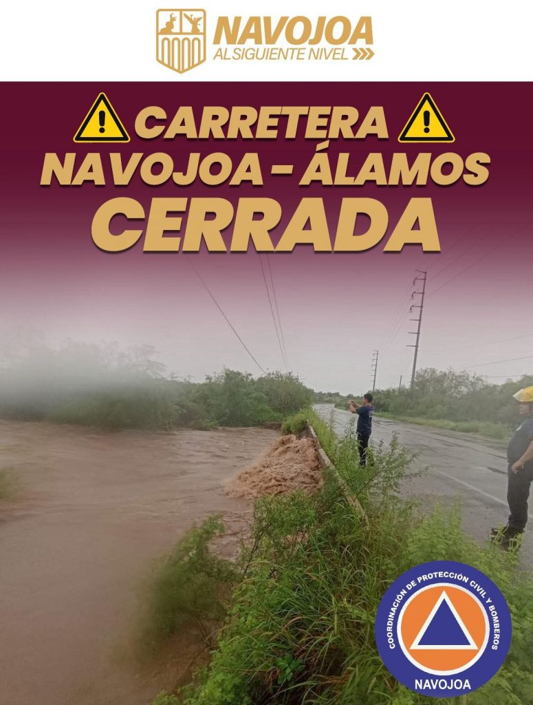 Se le informa a la ciudadanía que, de manera preventiva, se mantiene cerrado el tramo carretero Navojoa–Álamos. La medida obedece a la necesidad de evaluar posibles daños ocasionados por las recientes lluvias en distintos puentes y estructuras de la vía.