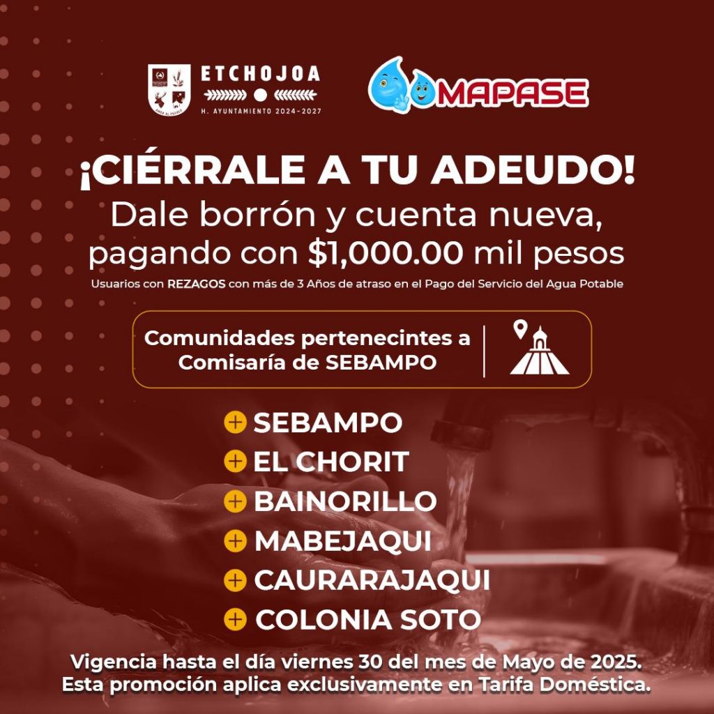 #Etchojoa #OOMAPASE #AguaPotable #Sebampo #PromociónEspecial #BorrónYCuentaNueva #Etchojoa