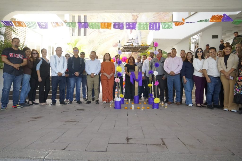 Navojoa, Sonora, 30 de octubre 2025.- Como parte de las actividades de difusión y fomento a las expresiones culturales indígenas enmarcadas en el próximo Día de los Fieles Difuntos, fue colocado un tapanco mayo en Palacio Municipal, donde los servidores públicos recibieron información sobre la historia y simbolismo de esta tradición ancestral de la etnia.