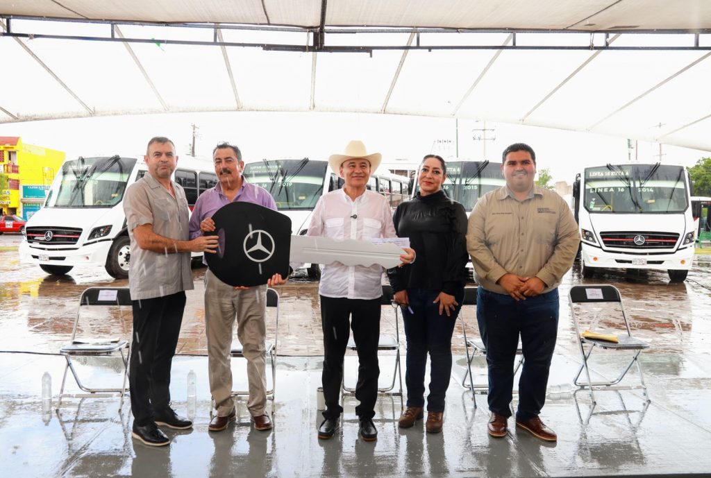 El Mandatario estatal entregó 20 unidades de transporte público para la ruta 10, y para las líneas 3, 7 y 8 se incorporan 30 camiones con la finalidad de eficientar el servicio a más de 64 mil personas, de las cuales 61 mil son estudiantes de 307 escuelas en 148 colonias, así como a siete hospitales y 11 clínicas de salud.