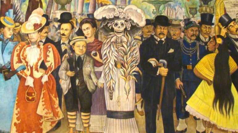 No fue hasta 1947 cuando el muralista Diego Rivera usó a este personaje, dándole el atuendo elegante que hoy en día todos conocemos, bautizándola como “La Catrina”, en su mural “Sueño de una tarde dominical en la Alameda Central”.