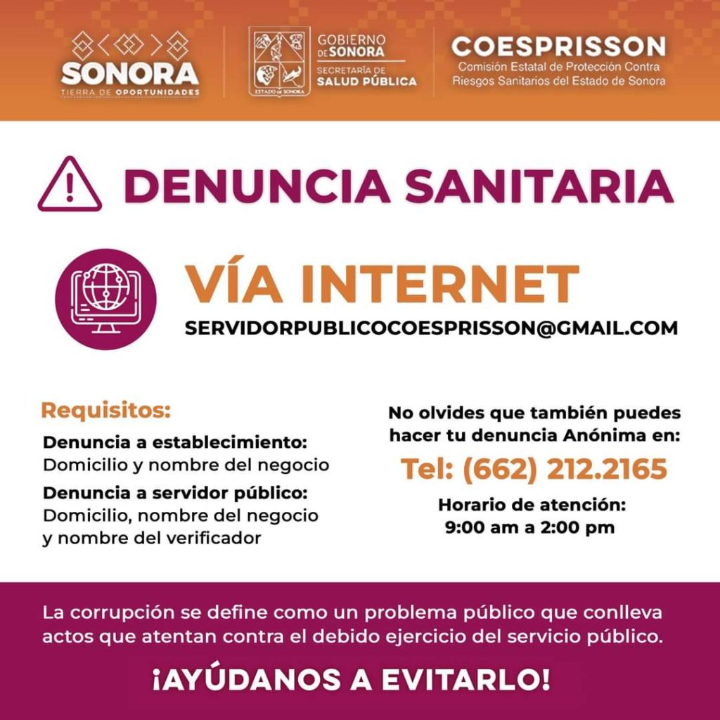 La Secretaría de Salud Sonora te invita a  realizar tu denuncia sanitaria por internet.