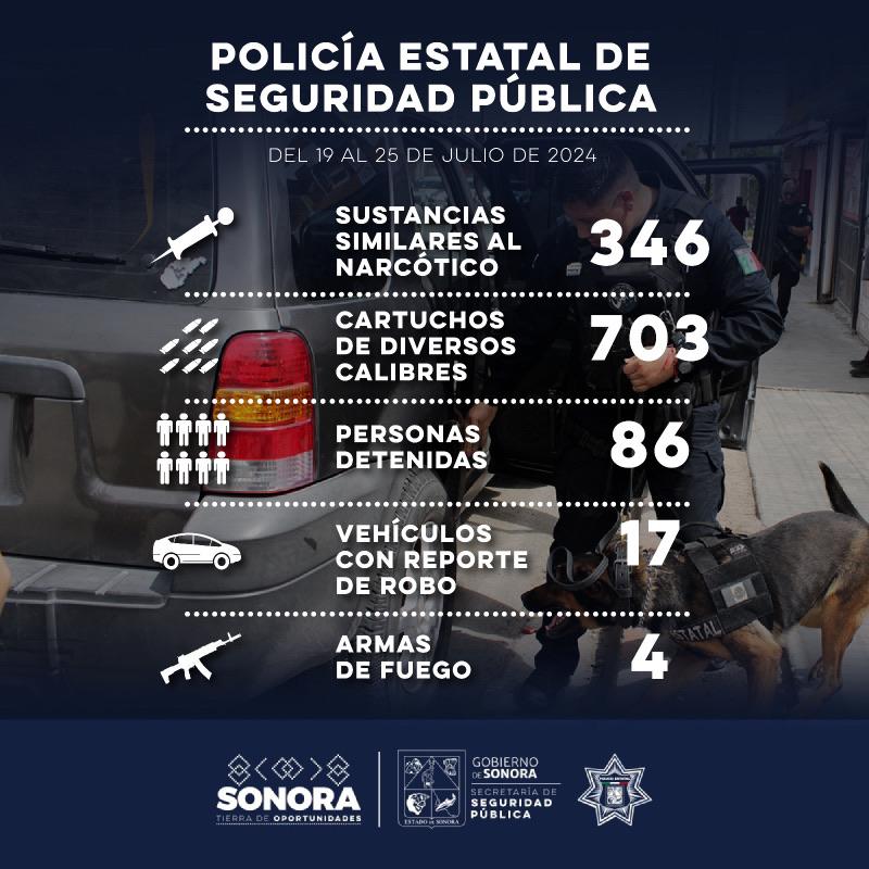 Oficiales de la Policía Estatal registraron estos aseguramientos principalmente en los operativos coordinados con los tres niveles de gobierno en los municipios de Hermosillo, Cajeme, Empalme, Benito Juárez, Mazocahui, Pitiquito, Benjamín Hill, San Luis Río Colorado, Caborca, Guaymas, Ónavas y Moctezuma, entre otros.