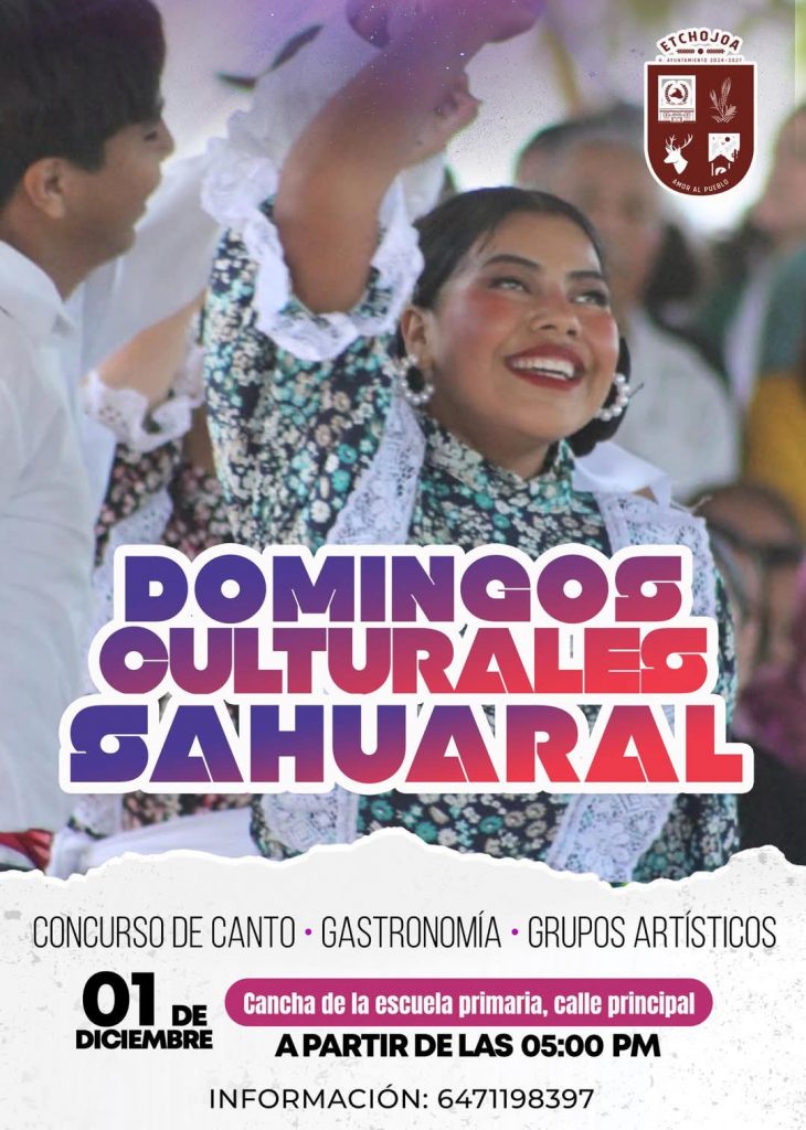 Etchojoa, Son.- El próximo 01 de diciembre, continúan los Domingos Culturales en Etchojoa y sus Comunidades, con una explosión de arte, música, danza y tradición.