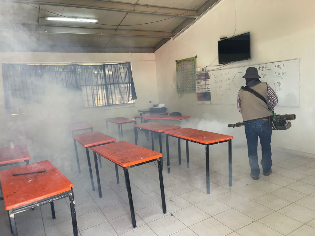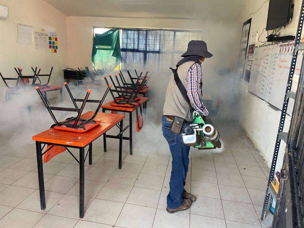 El Gobierno de Huatabampo y Distrito 5 de Salud intensifican fumigación en escuelas.