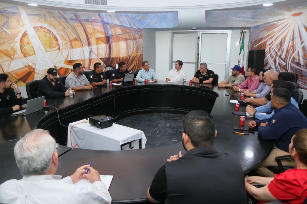 Navojoa, Sonora, 27 de agosto 2025.- El alcalde Jorge Alberto Elías Retes sostuvo esta noche una reunión de coordinación con autoridades de Protección Civil del Estado y Municipal, así como Sedena y varias dependencias y corporaciones, entre ellas la CFE, para evaluar y exponer el plan estratégico de prevención y atención en caso de contingencias por el registro de las lluvias pronosticadas para Navojoa.