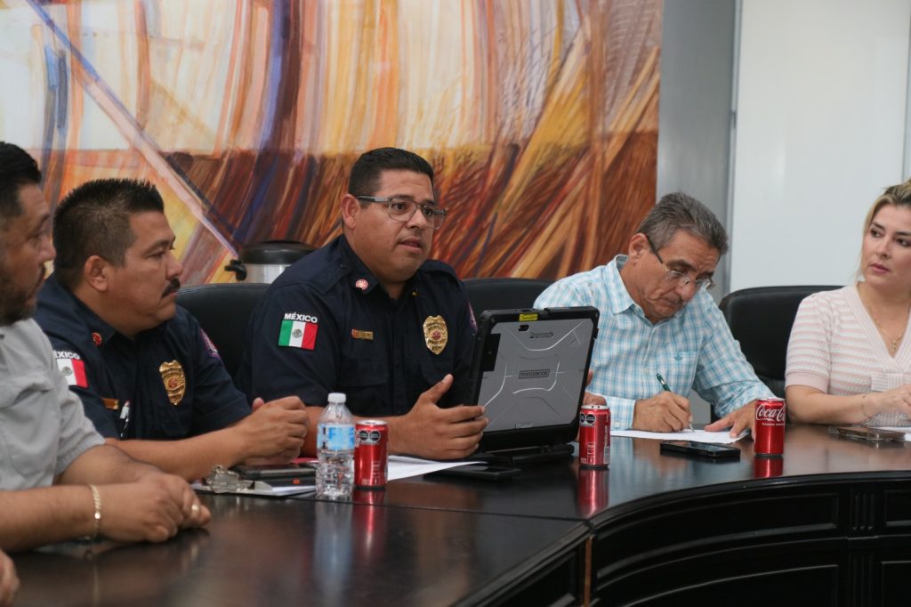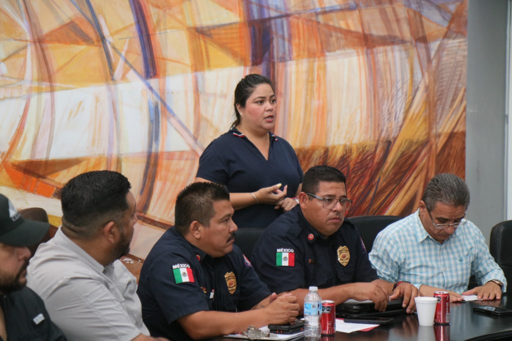 Al encuentro, sostenido en la Sala de Cabildo en Palacio, asistieron la presidenta del DIF, Luz Argel Gaxiola de Elías, el secretario técnico de Protección Civil Municipal, Jesús Edmundo Valdez Reyes, en tanto que por el gobierno estatal Daniel Abraham Gámez Martínez, director de Atención a Emergencias y Desastres de Protección Civil del Estado.