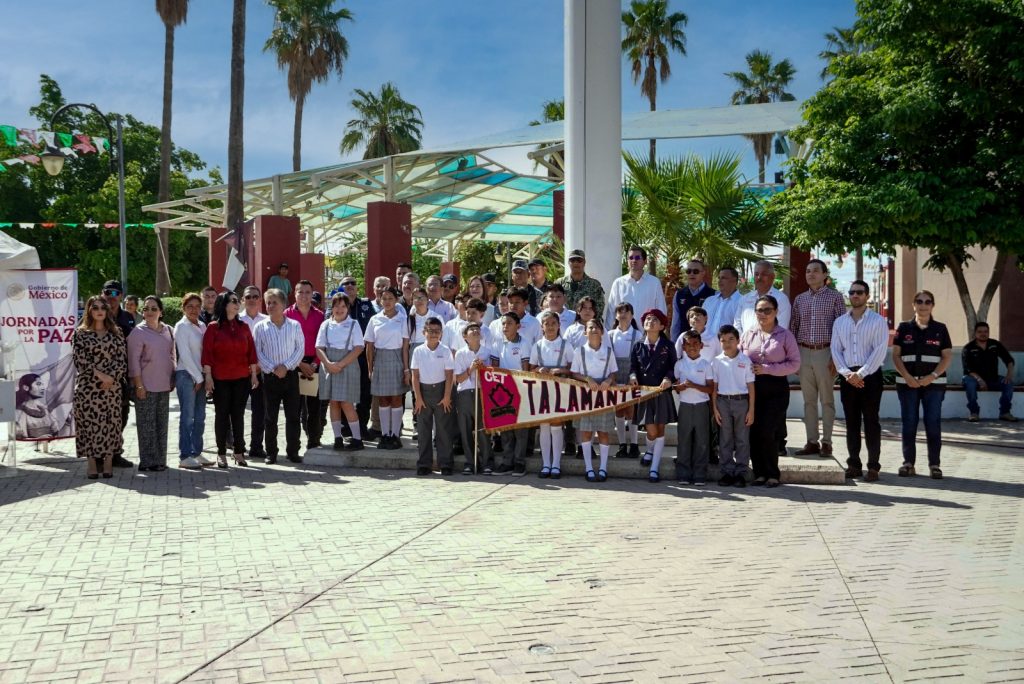Navojoa, Sonora, 8 de septiembre 2025.- El compromiso de hacer todo lo que esté al alcance para preservar la tranquilidad social, unidos todos los niveles de gobierno y ciudadanía, reiteraron hoy el alcalde de Navojoa, Jorge Alberto Elías Retes, y autoridades de las fuerzas armadas durante la celebración de la ceremonia cívica enmarcada en las Jornadas por la Paz y Atención a las Causas.