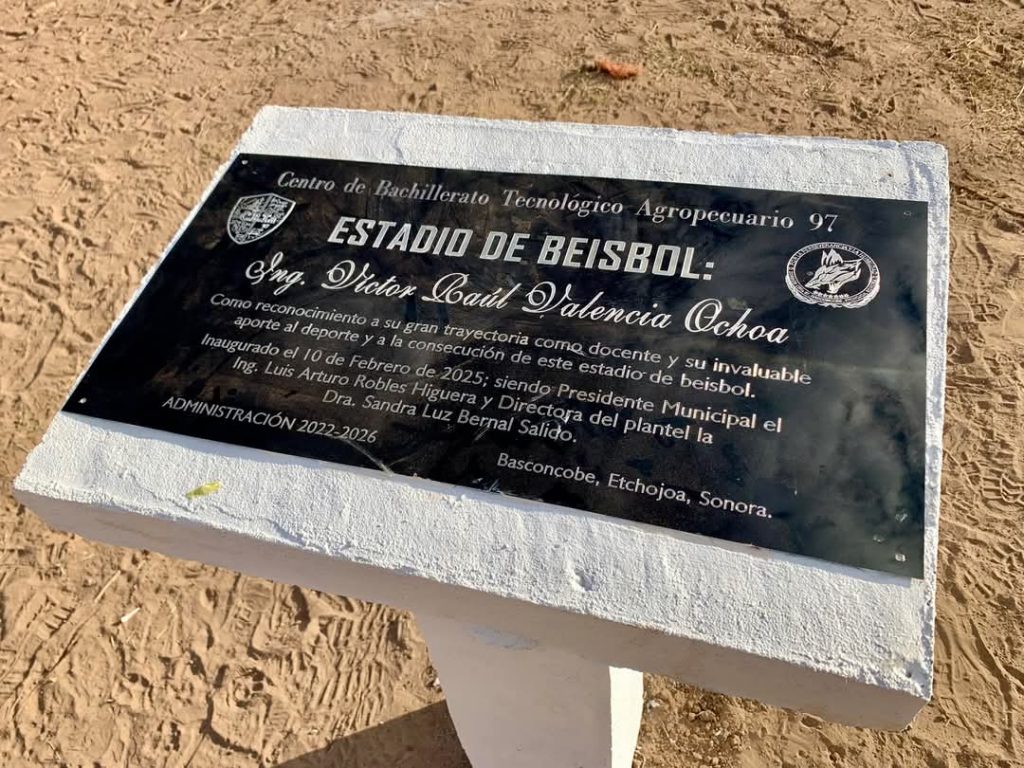 #Basconcobe #Etchojoa, Son.- El Presidente Municipal, Ing. Luis Arturo Robles Higuera, entregó obras de rehabilitación de espacio deportivo del Estadio de béisbol ‘Ing. Víctor Raúl Valencia Ochoa’ y baños en beneficio de las y los estudiantes del CBTA 97 Basconcobe.