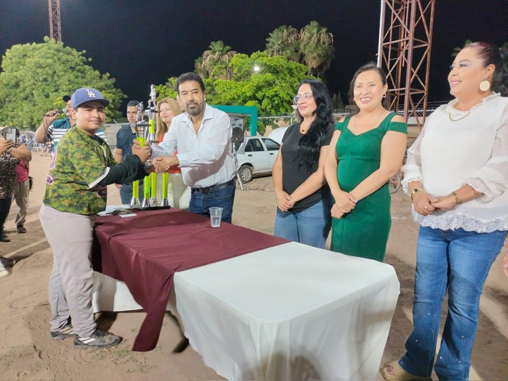 Presentes la Síndica, Sayra Angélica Borboa Anguamea; Regidoras, Mayra Doré Jocobi Valdez, Ramona Mancillas Borbón, Ana Lilia Córdova; el Regidor, Sebastián Valenzuela; el Director de Deportes, Diego Vásquez Navarro; el Director de Servicios Públicos, Ramón Rojas; Padres de familia y entrenadores acompañaron orgullosos a los pequeños beisbolistas, quienes recibieron trofeos y aplausos.