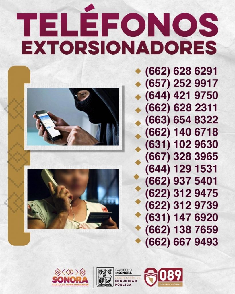 Hermosillo, Sonora.- Con el objetivo de prevenir que la ciudadanía sea víctima de extorsión telefónica, el Gobierno de Sonora dio a conocer los 15 principales números desde los que, de acuerdo con reportes ciudadanos, se han intentado cometer este delito.