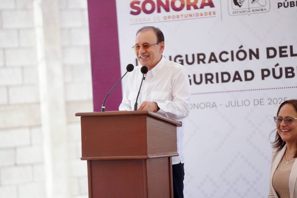 Guaymas, Sonora; 21 de julio de 2025.- Como parte de la Estrategia Nacional de Construcción de Paz en Sonora, el gobernador Alfonso Durazo Montaño y la subsecretaria de Gobernación Rocío Bárcena Molina, encabezaron una gira de trabajo por el sur del estado para la inauguración del Complejo de Seguridad Pública en Guaymas, con una inversión de 300 millones de pesos y llevaron a cabo la instalación del Consejo Estatal de Paz y Justicia Cívica en Cajeme.