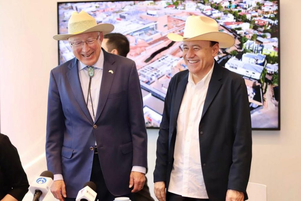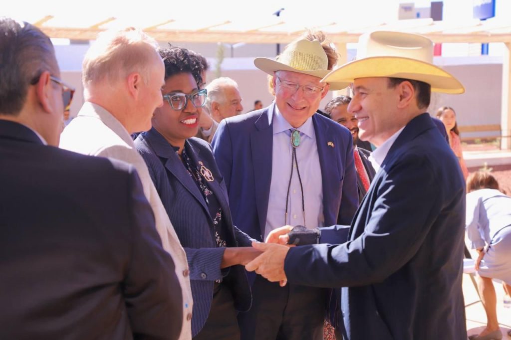 Nogales, Sonora; 25 de septiembre de 2024.- Por el potencial que posee el Plan Sonora de Energías Sostenibles para el desarrollo de la industria de semiconductores, comercio y turismo, el futuro de México está en Sonora, lo que ha generado el interés del gobierno estadounidense por reforzar los lazos binacionales, a través de inversiones millonarias de más de 500 millones de dólares aplicadas en la construcción de los Consulados Generales de Estados Unidos en Hermosillo y Nogales, concordaron el gobernador Alfonso Durazo Montaño y el embajador de los Estados Unidos en México Ken Salazar.
