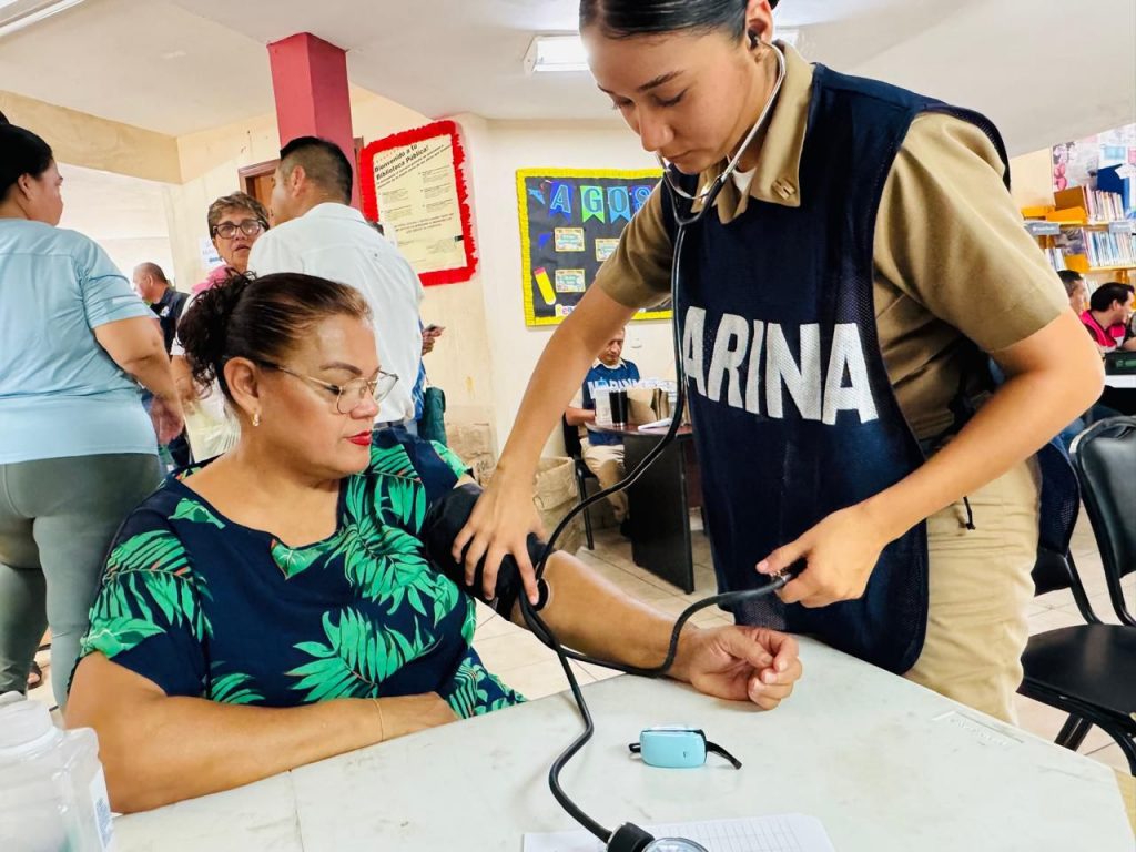 Etchojoa, Son.-.Con el firme propósito de garantizar el acceso a servicios médicos y de bienestar, este jueves se llevó a cabo con gran éxito la Campaña Integral de Salud en la Cabecera Municipal de Etchojoa, organizada por la Segunda Región Naval en coordinación con el Gobierno Municipal, IMSS Bienestar y la Secretaría de Salud de Sonora.