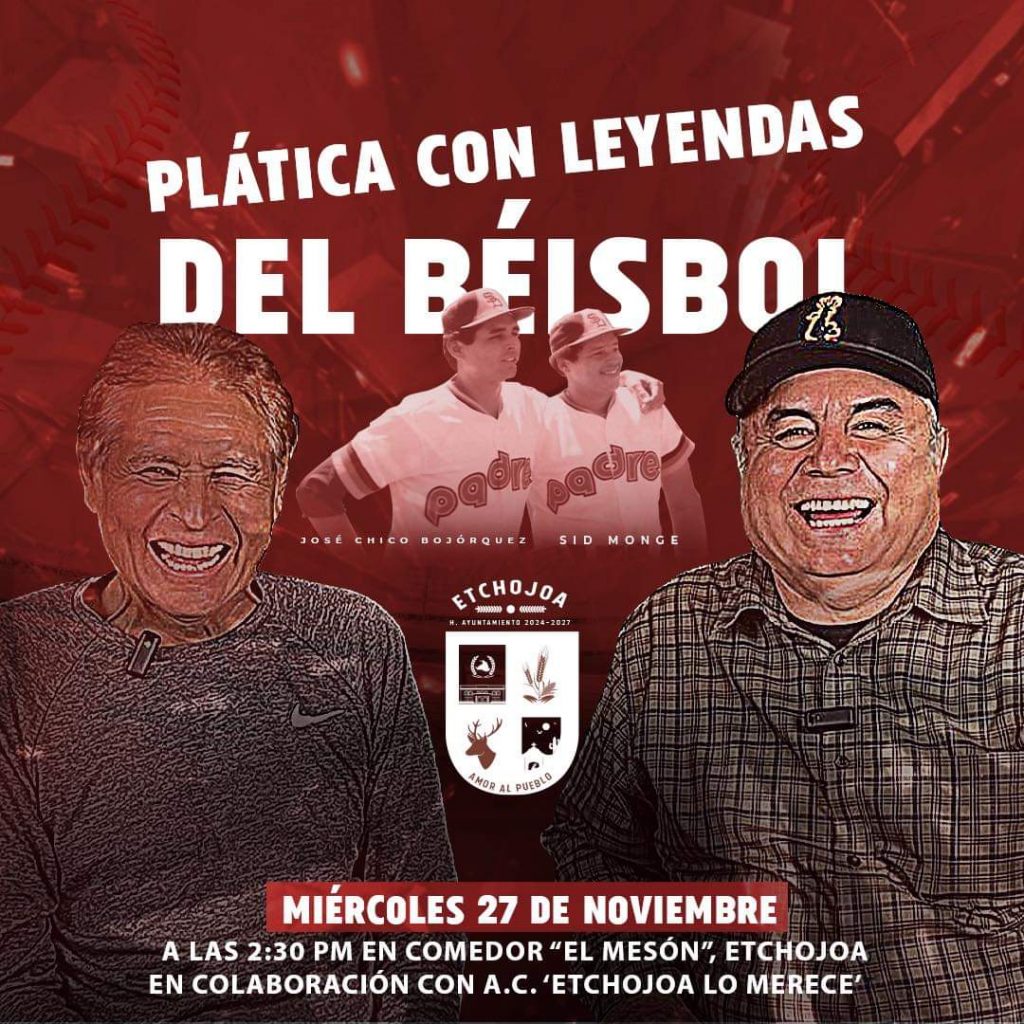 Etchojoa, Son.- ⚾️ | El Gobierno Municipal que preside el Luis Arturo Robles Higuera, a través de la Dirección del Deporte y en coordinación con la asociación “Etchojoa lo Merece”, invitan a la plática con ‘Leyendas del Béisbol’, este miércoles 27 de noviembre, en el comedor ‘El Mesón’.