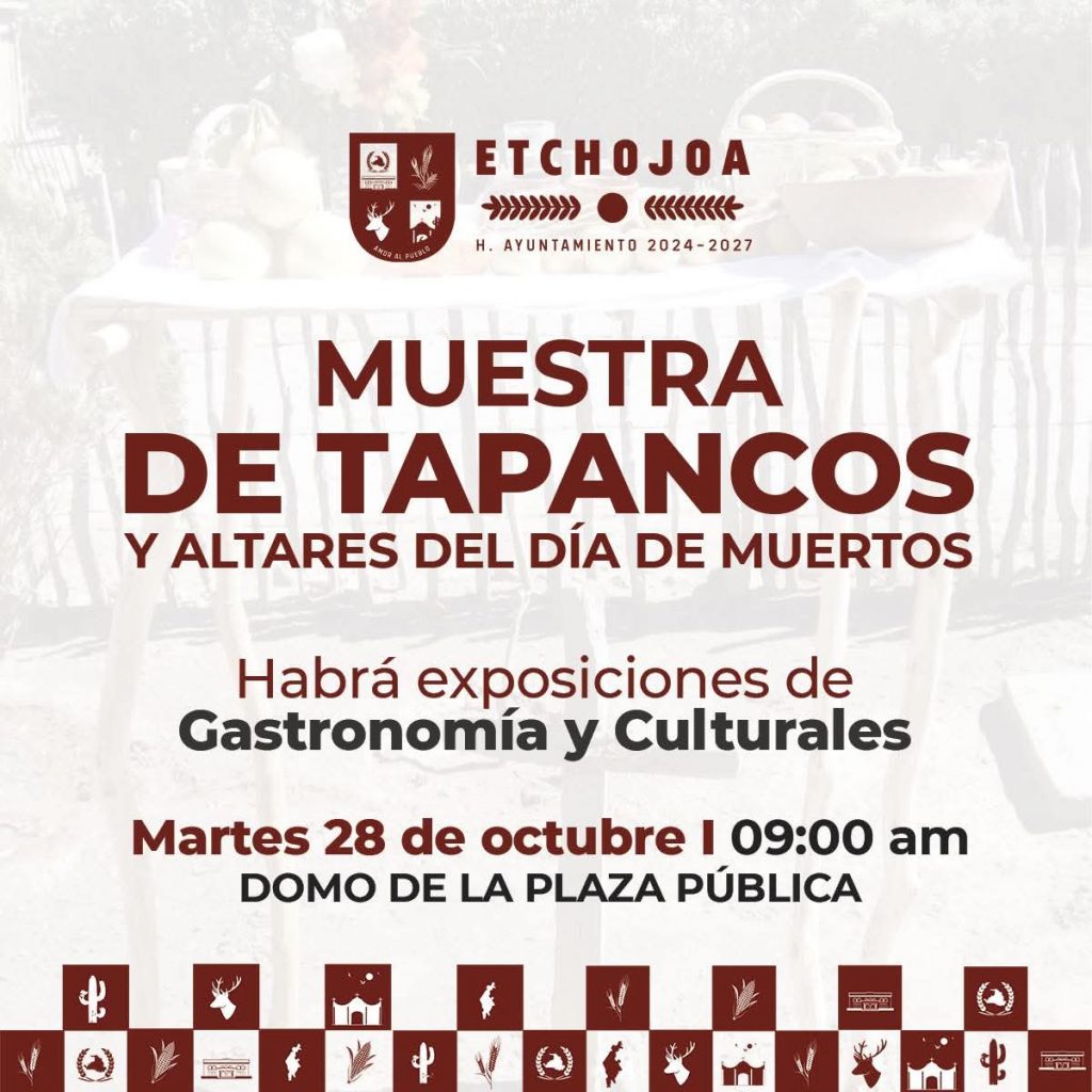 🕯️💀🌼🌸 | Este martes 28 de octubre, el Gobierno Municipal que preside el Ing. Luis Arturo Robles Higuera, a través de la Dirección de Educación y Cultura, invitan a la Muestra de Tapancos y Altares del Día de Mu3rt0s.
