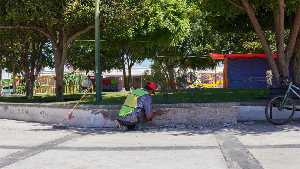 Huatabampo, Sonora; 17 de septiembre de 2024 – Con el compromiso de comenzar trabajando y cumplirle a los huatabampenses, el presidente municipal, Alberto “Beto” Vázquez, dio inicio a los trabajos de remozamiento en la plaza Benito Juárez.