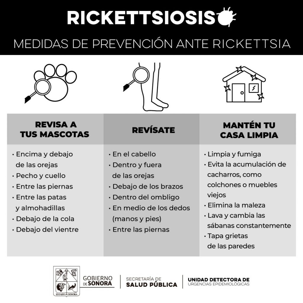 Ante esto, es fundamental buscar atención médica para tener un diagnóstico oportuno, ya que, si la enfermedad se diagnostica y se trata con medicamento en un lapso de cinco días, se puede curar, de lo contrario las consecuencias pueden ser fatales para quienes padecen de rickettsia.