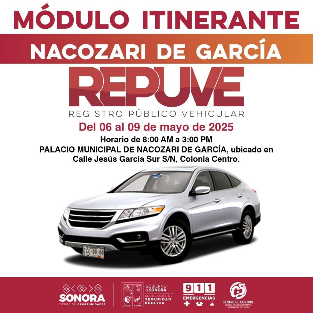 La unidad móvil estará ubicada frente al Palacio Municipal de Nacozari de García, en calle Jesús García Sur, colonia Centro, C.P. 84340, con horario de atención de 8:00 a.m. a 3:00 p.m.