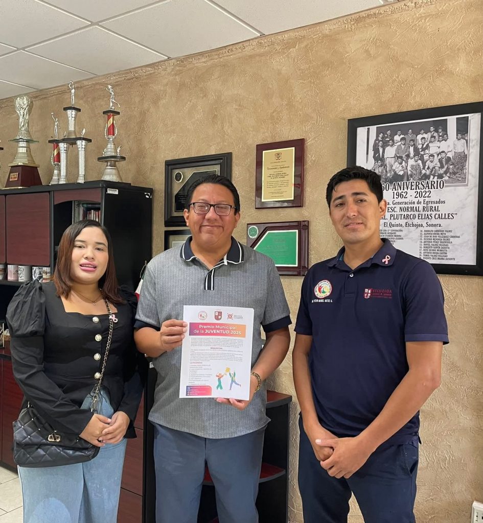 Etchojoa, Son.- Con el objetivo de reconocer el talento, esfuerzo y compromiso de las y los jóvenes etchojoenses, el Gobierno Municipal que encabeza el Ing. Luis Arturo Robles Higuera, a través del Instituto Etchojoense de la Juventud, extendió la invitación al alumnado de la Escuela Normal Rural Plutarco Elías Calles “El Quinto” para participar en el Premio Municipal de la Juventud 2025, que se llevará a cabo el próximo 25 de octubre.