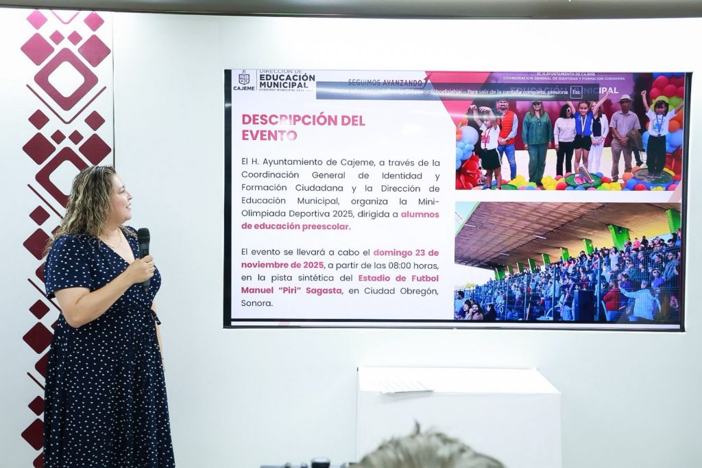 Cd. Obregón, Sonora.- Para estimular las aptitudes atléticas y fomentar la sana convivencia en las y los alumnos de educación preescolar, el H. Ayuntamiento de Cajeme, a través de la Coordinación General de Identidad y Formación Ciudadana y la Dirección de Educación Municipal, invitan a la convocatoria de la doceava edición de “Mini-Olimpiada Deportiva 2025”, que se llevará a cabo el domingo 23 de noviembre de 2025, a partir de las 08:00 horas en la pista sintética del Estadio de Fútbol Manuel “Piri” Sagasta.