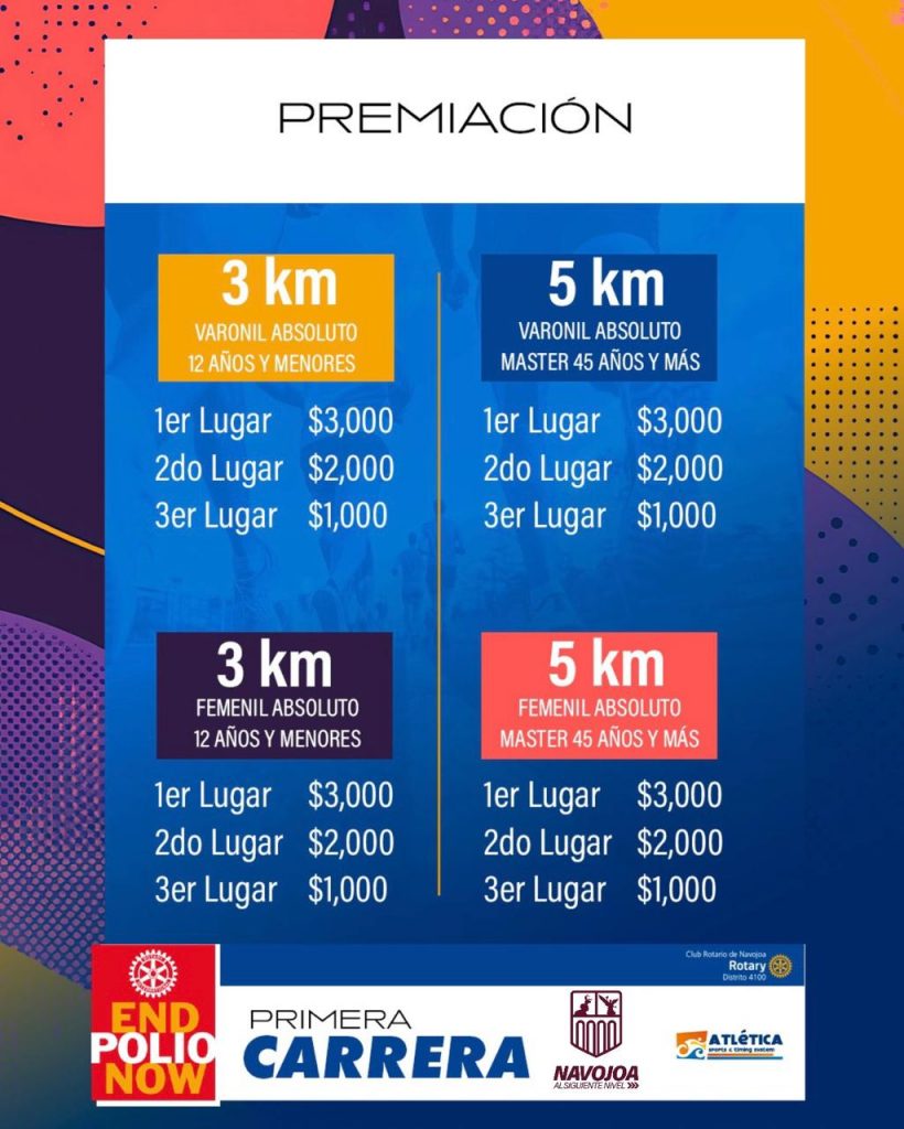 Navojoa, Sonora, 30 de octubre 2025.- El 9 de noviembre próximo tendrá lugar la Primera Carrera “End Polio Now”, que abarcará rutas de caminata y corrida en 3, 5 y 10 kilómetros, con una bolsa global de premios de 86 mil pesos, evento impulsado por el Club Rotario de Navojoa, bajo el respaldo del gobierno del alcalde Jorge Alberto Elías Retes.