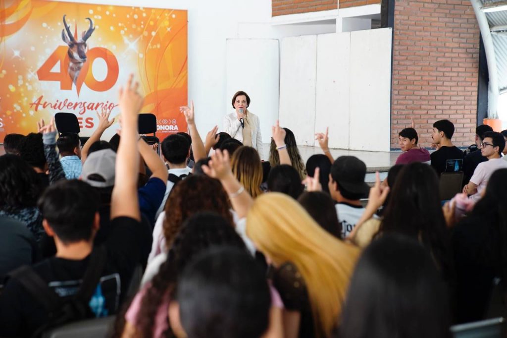 Hermosillo, Sonora.- La candidata de MORENA a la presidencia de Hermosillo, María Dolores Del Río, sostuvo un diálogo e intercambio de ideas con cientos de alumnos y alumnas de la Universidad Estatal de Sonora (UES).