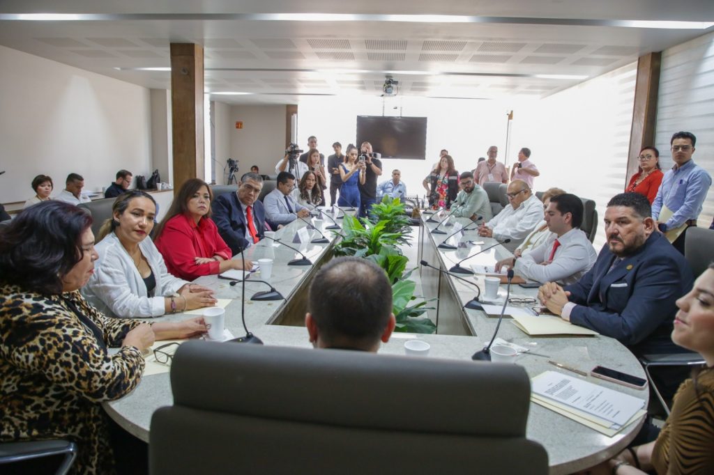 Acompañado de Claudia Bours Corral (PVEM), Julio César Navarro Contreras (Morena), Rosángela Peña Escalante (PES), Alicia Gaytán Sánchez (Morena), Emeterio Ochoa Bazúa (PRI) y Ana Gabriela Tapia Fonllem (PRD), el presidente de la comisión, René García Rojo (PT), hizo entrega de un listado de asuntos pendientes de la anterior legislatura para dictaminar.